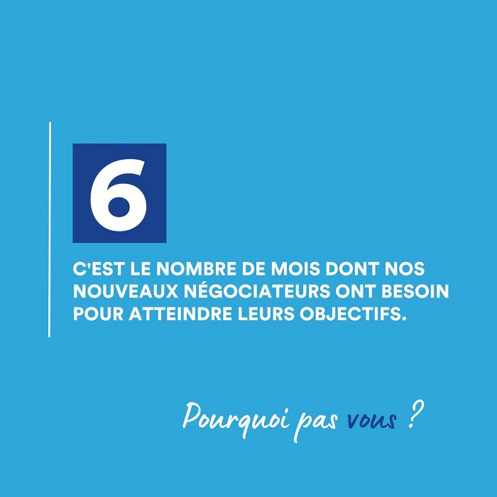6 mois seulement pour atteindre vos objectifs de vente, avec un accompagnement sur-mesure pour développer vos compétences, votre carrière et vous maintenir à la pointe du secteur immobilier dans un groupe familial, porté sur l'humain et l'amour des biens urbains. Vous vous êtes dit "pourquoi pas moi ?" et vous avez raison, pourquoi pas vous ?